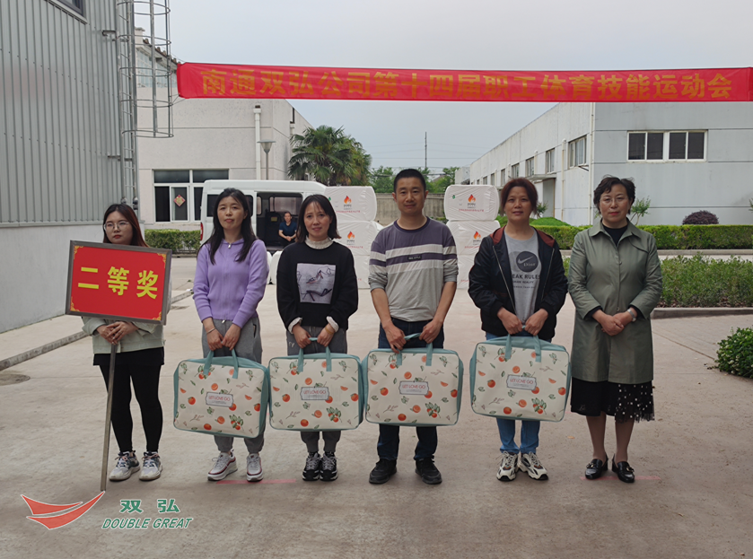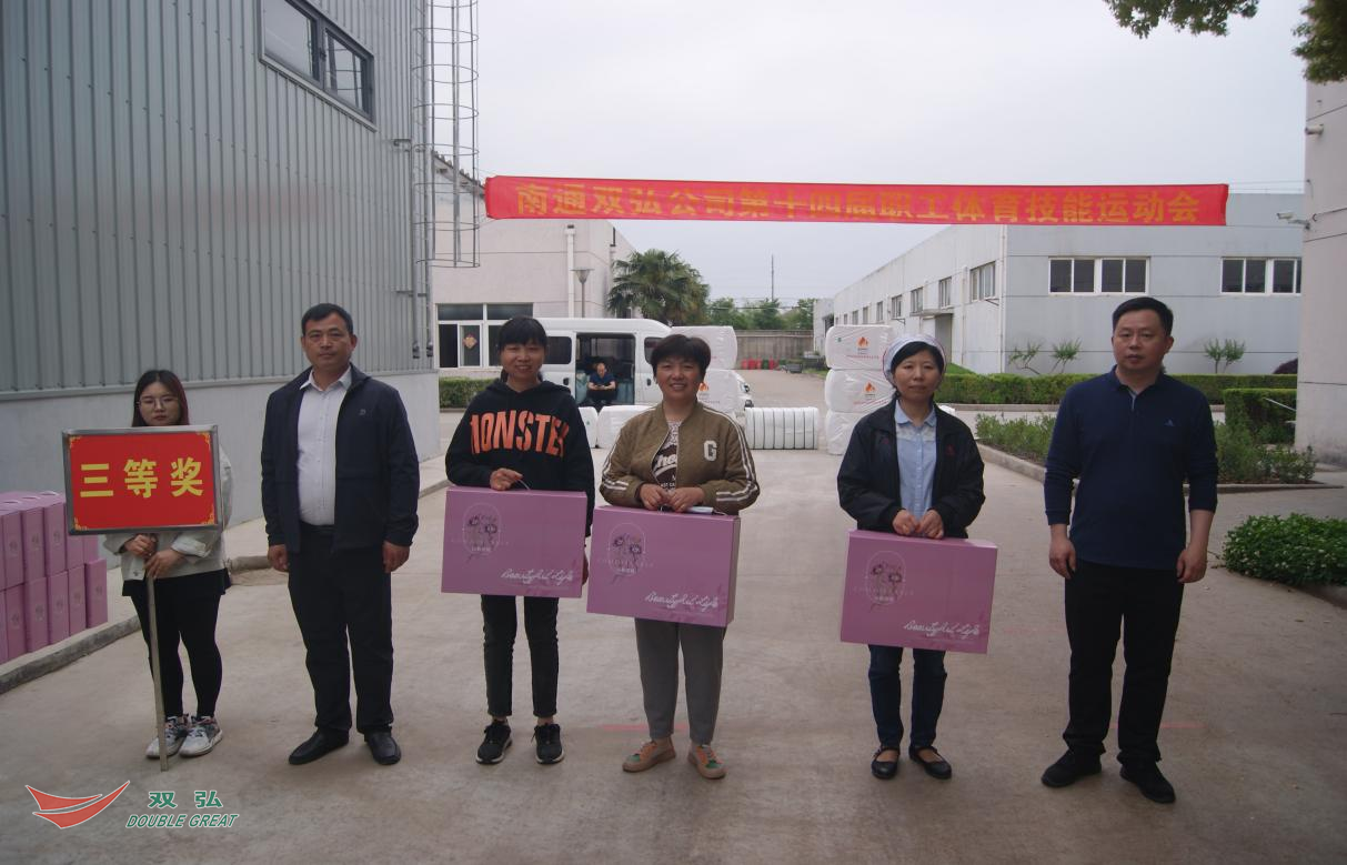 A munkavállalók szellemi és kulturális életének gazdagítása, a kemény munka, a haladás, az egészség és a harmónia szellemének előmozdítása érdekében, a munkavállalók többségének kohéziójának és centripetális erejének fokozására, valamint a vállalkozás magas színvonalú fejlődésének elősegítésére, Május 6 -án a Nantong Double Great Textile Co., Ltd. tartotta a 14. munkavállalói sportkészségeket. Zhang Guangyun, a Qutang Town Szakszervezetek Szövetségének teljes munkaidős alelnöke, valamint Yang Yang, a Double Great Company elnöke, részt vett a rendezvényen. Több mint 160 frontvonal alkalmazottja vett részt a vállalat különféle workshopjaiból a versenyeken különféle rendezvényeken.